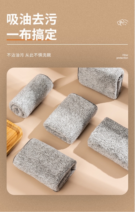 5条装日式竹炭洗碗布家用超细纤维厨房多功能吸水去油污懒人抹布